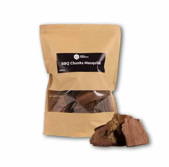 Grill Fanatics kocke Mesquite 1kg – močan dimni okus in lep dimni obroč za prave BBQ mojstre. Idealno za goveja prsa, rebra in divjačino!